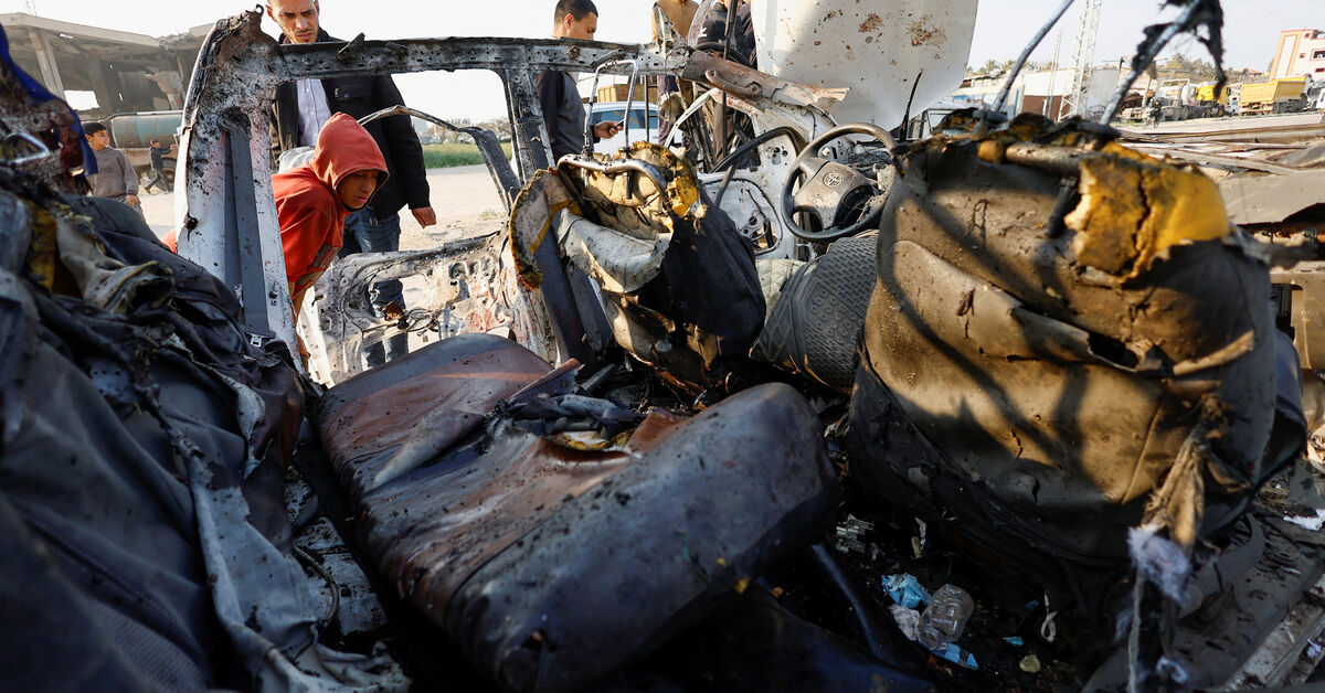 In Israel’s most recent attack, nine police officers were killed in an airstrike on a car in Zawayda in central Gaza on Sunday, Gaza medics said. The bombed-out remnants of the car, stained with blood, were left on the street, surrounded by destroyed buildings.