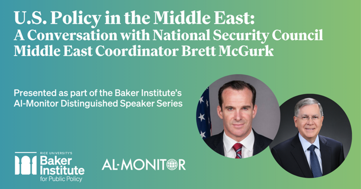 This discussion is presented as the inaugural event in the Baker Institute’s Al-Monitor Distinguished Speaker Series. Andrew Parasiliti, president and chief content officer at Al-Monitor, will deliver opening remarks.